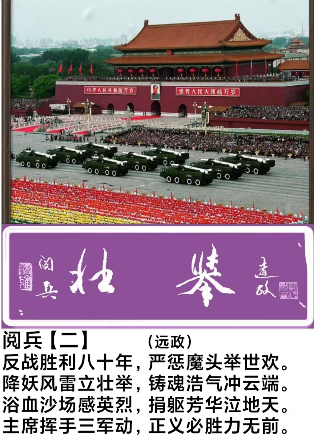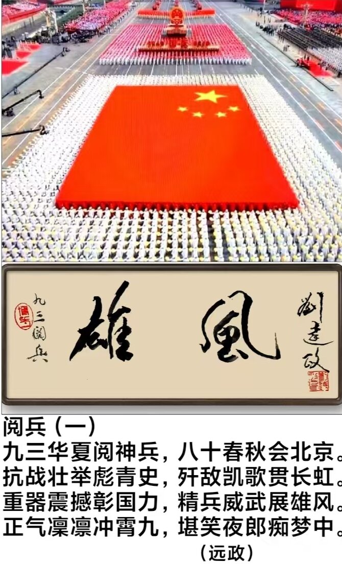 八年抗战威风显,三年决战天地换。